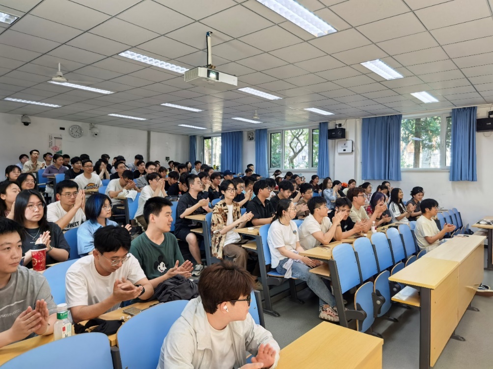 6月5日下午,智能公司党委书记闻映红以《深入贯彻中央八项规定及其实施细则精神》为主题,在九教东102为2025届毕业生党员讲授“最后一堂党课”。100余名毕业生党员与部分低年级党员代表共同参加。
