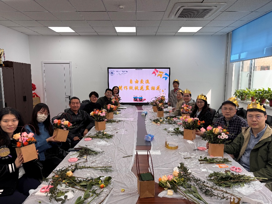 在接下来的插花环节里,教职工们认真搭配鲜花,修剪高度,每一步都饱含创意,同样的花束在不同的老师手里展现出了不同的姿态,被创作成一盆盆独具匠心的作品。