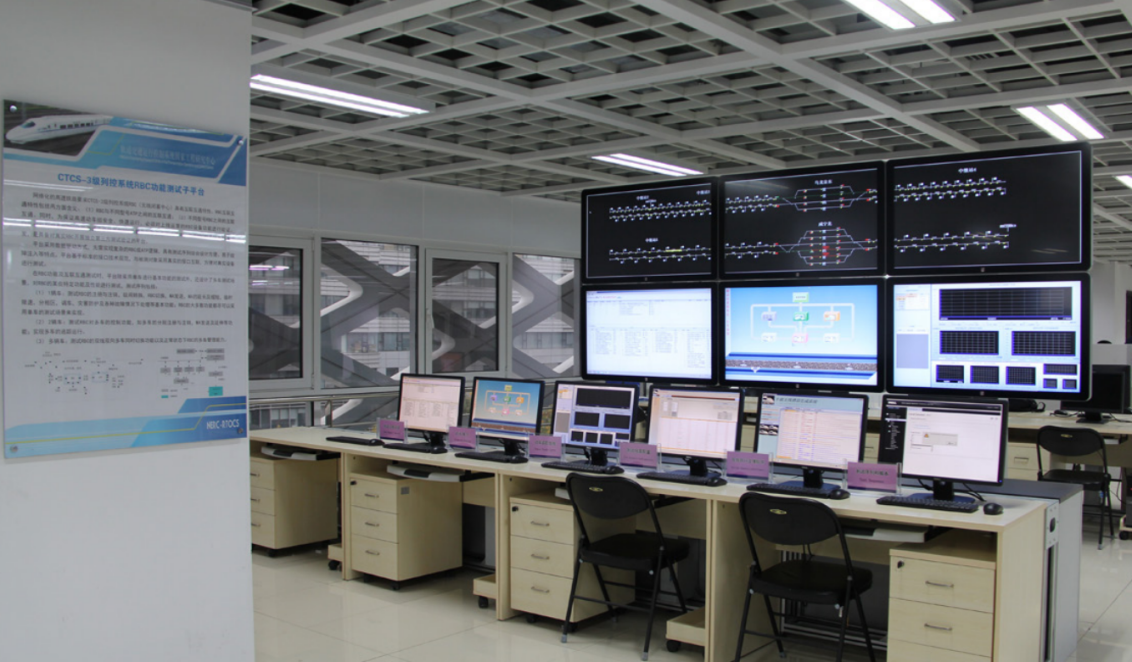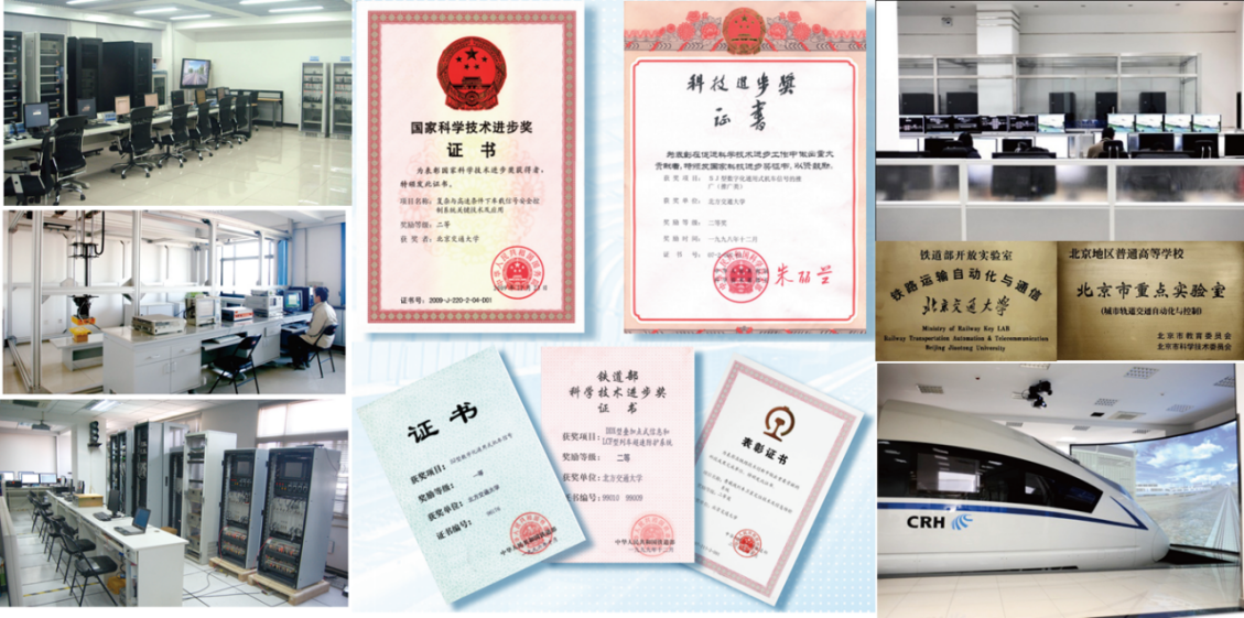 高速铁路列控系统仿真测试。通过自主构建独立第三方的CTCS列控系统实验室测试平台,实现对高铁列控系统和关键子系统功能测试和互联互通测试,为我国多个高铁列控设备研发单位完成了列控产品的第三方测试,涵盖了我国现有各类列控系统及相关产品种类,包括CTCS-3级国产化车载设备、CTCS-3级自主化车载设备、CTCS-2级车载设备、CTCS-3级国产化RBC设备、CTCS-3级自主化RBC设备、高铁ATO系统等。承担多项科研项目,获得铁道学会科技进步一等奖2项。实验室已取得国家认监委认可的CMA检验检测资质证书,填补了我国CTCS列控系统装备检验检测能力的空白。