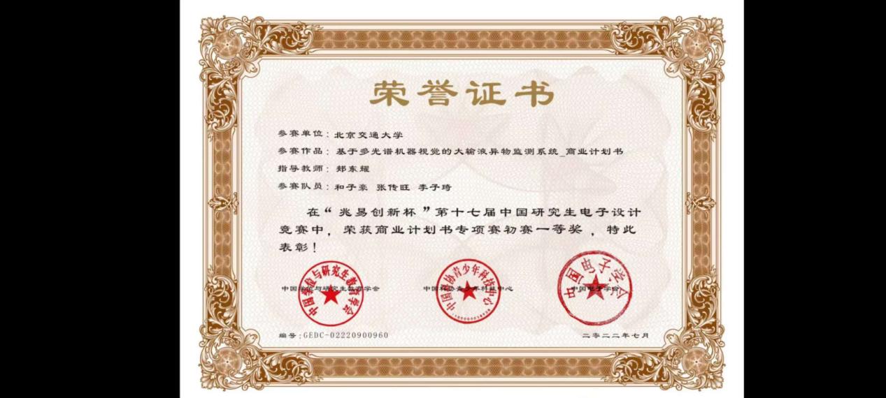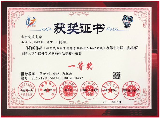 近三年,在本所侯涛刚老师的指导下多位本科生在国家各大创新创业赛事中展露才华,将学科知识应用于交通、医疗等行业,获得省部级以上竞赛荣誉奖励16项。其中包括“挑战杯”全国老员工课外学术科技作品竞赛全国一等奖1项,“挑战杯”中国老员工创业计划竞赛金奖1项,银奖1项,中国国际“互联网+”老员工创新创业大赛全国银奖1项,其余省部级竞赛荣誉奖项12项(其中金奖2项,一等奖5项,二等奖5项)。
