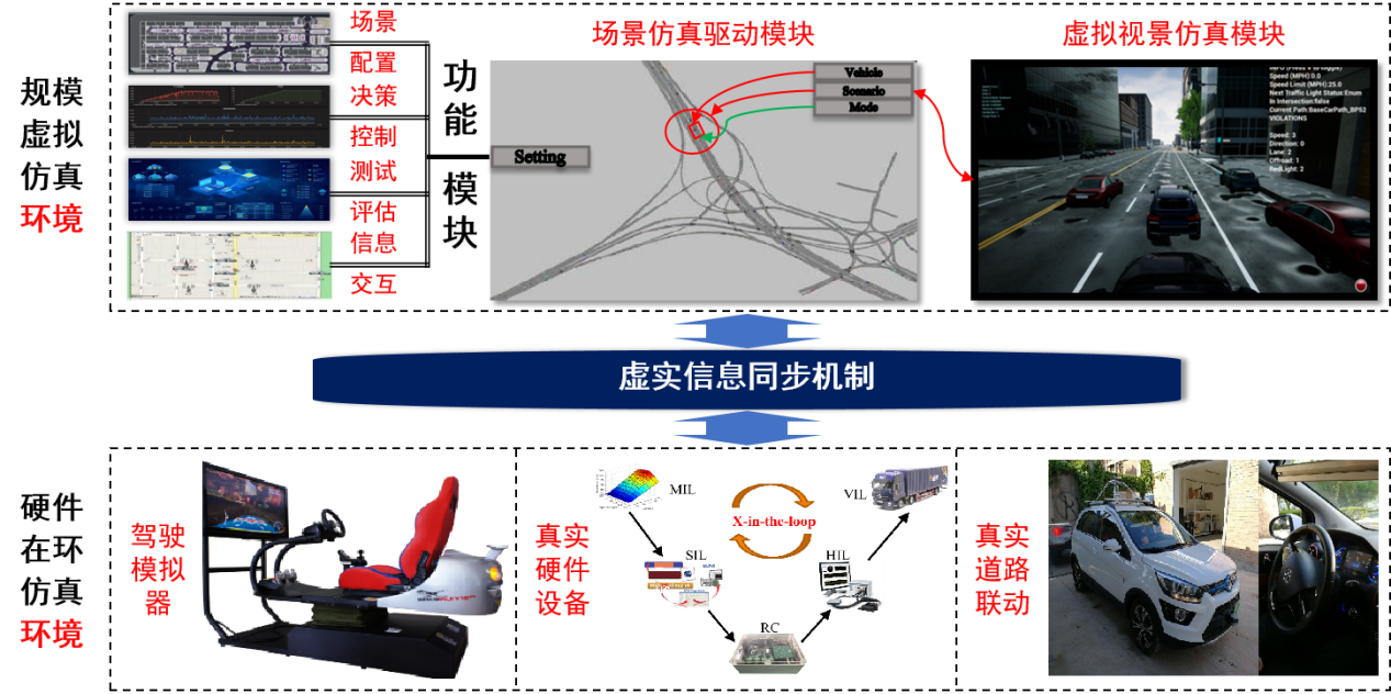 自主智能与无人系统研究中心不断地跟进我国智能车路协同系统的发展,围绕智能驾驶环境感知、网联化数字基础设施建设、大规模交通流行为预测与控制等技术问题,搭建了国内首套车路协同自动驾驶仿真测试、验证与评估平台,集全局规划、轨迹规划、安全避障、协同控制等技术应用与测试于一体,开展智能车载关键技术、车路/车车协同信息交互技术、智能路侧系统关键技术、车路协同系统集成和仿真测试技术研究。并研制了车路信息交互系统、智能车载系统、交通大数据分析系统、智能驾驶系统等,形成了基础模型构建、系统实体交互、安全效率评估、群体智能应用的研究与应用体系,在青岛、南京、武汉、上海、常熟等开展示范和应用。