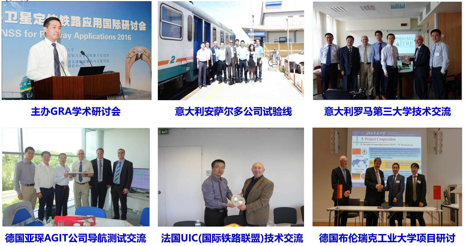 自主智能与无人系统研究中心面向基于卫星导航的列车运行控制领域,长期开展国际合作交流,先后主持了科技部中德合作项目“基于卫星导航的列车运行控制系统技术合作研究”,与德国布伦瑞克工业大学开展了合作,并拓展合作至意大利罗马三大等高校以及泰雷兹公司、阿尔斯通公司等,开展了交流互访、合作研究,形成了包括电子轨道地图、基于卫星导航的定位技术等多项成果,提升了研究中心在国际上的影响力。