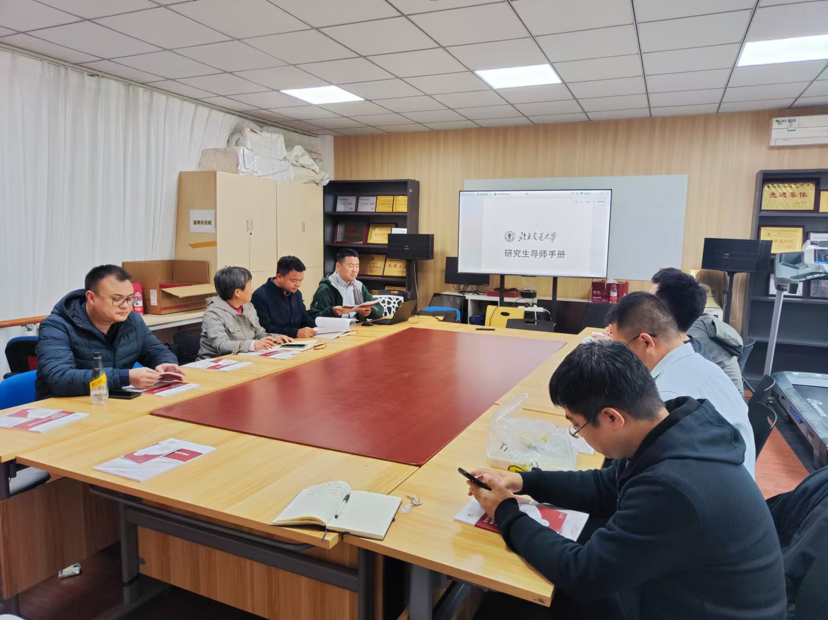 同时讲述教师思想政治和师德师风建设中的底线要求,就《新时代高校教师职业行为十项准则》中“十不得”、《研究生导师指导行为准则》“八不得”进行重点说明,以《新时代高校教师职业行为十项准则》为纲,进行高校师德师风失范典型案例警示教育,提醒导师严格遵守高校教师的基本道德准则和行为规范,时刻保持警醒,坚守师德底线。会后将导师手册、师德师风建设中的底线要求的PPT发给全体导师,要求导师认真学习并贯彻这些准则,以实际行动强化师德师风建设。